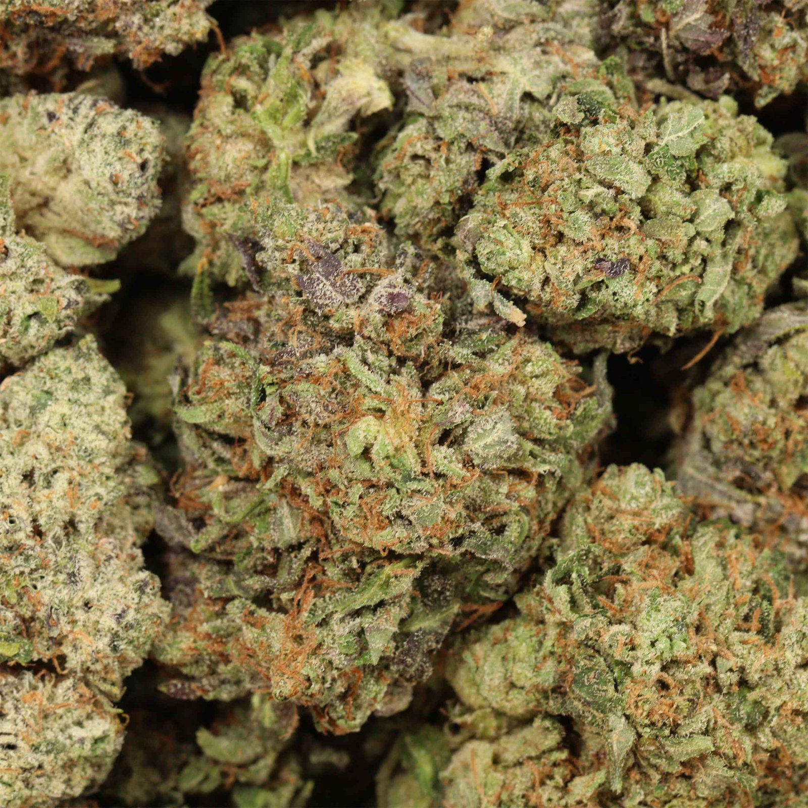 Pink hairs burst from bright green buds barely visible under a blanket of sugar-like trichomes in this hand-trimmed, hang-dried BC Pink Kush strain. It’s an indica-dominant strain with very strong THC potency and traces of sweet vanilla and candy perfume. Its terpene profile includes myrcene & nerolidol, and it’s available to order weed online with Bulk Buddy.