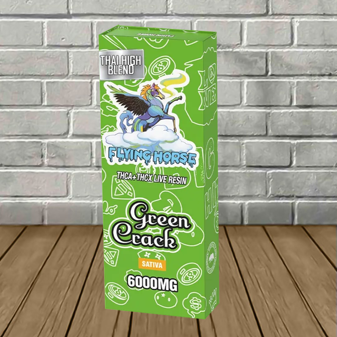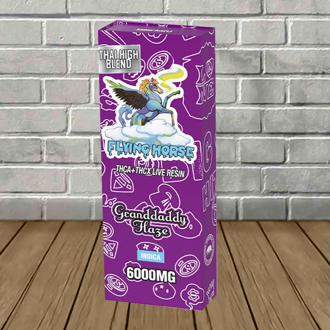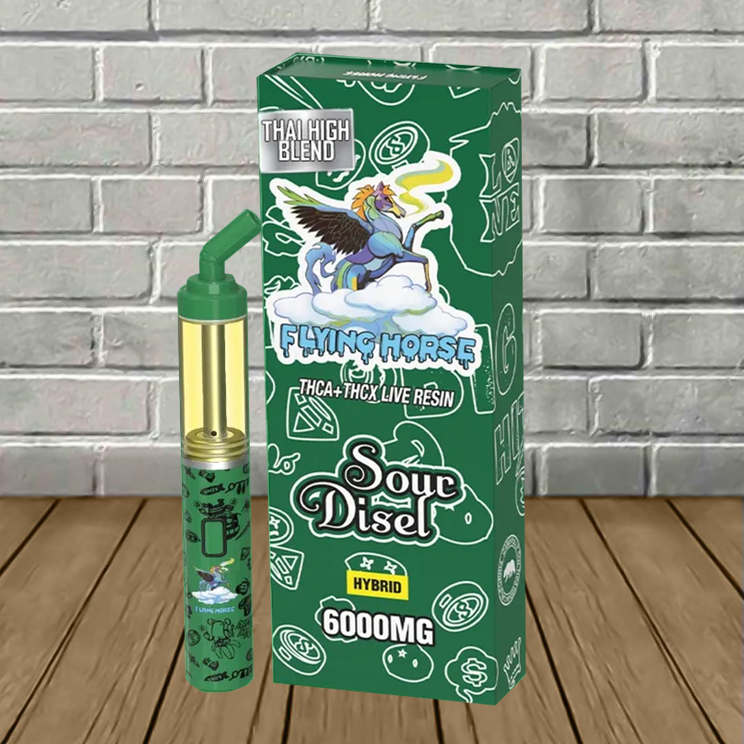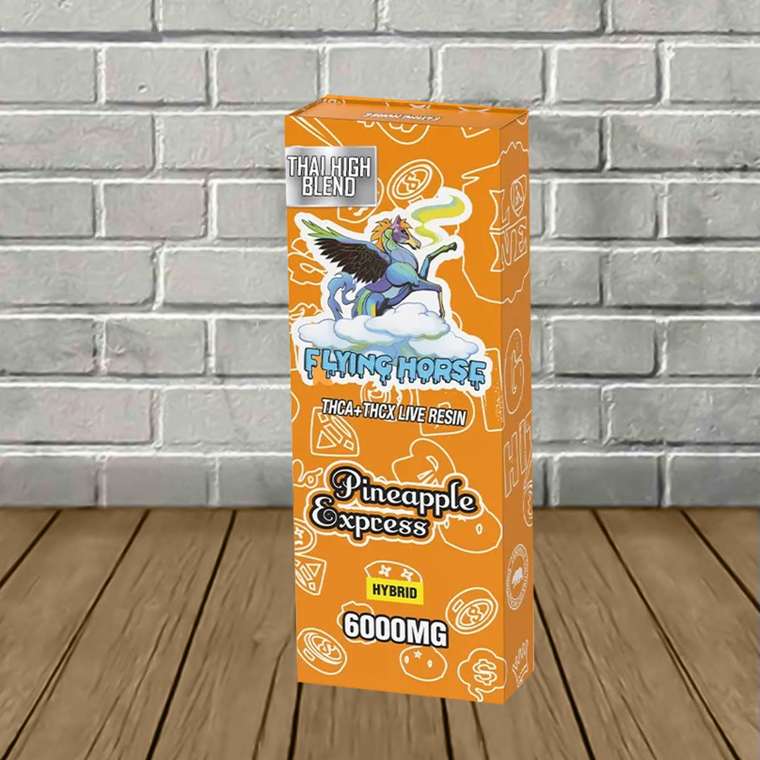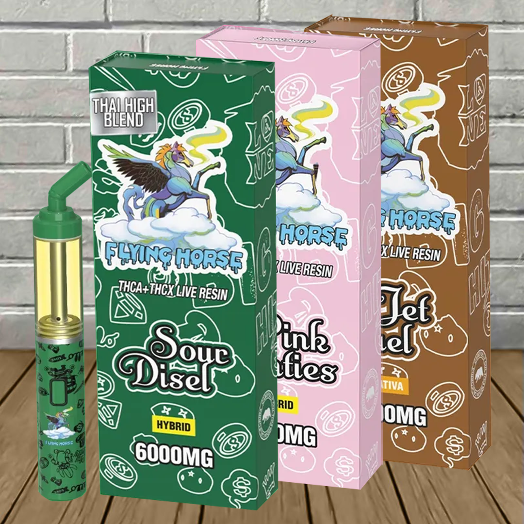 Flying Horse Thai High Blend Disposables contain a potent 6g blend of THCa, THCx, and flavor-packed live resin terpenes to enhance this premium vaping experience further! As mentioned, this blend hits users hard in the eyes and provides a relaxing body buzz!