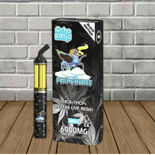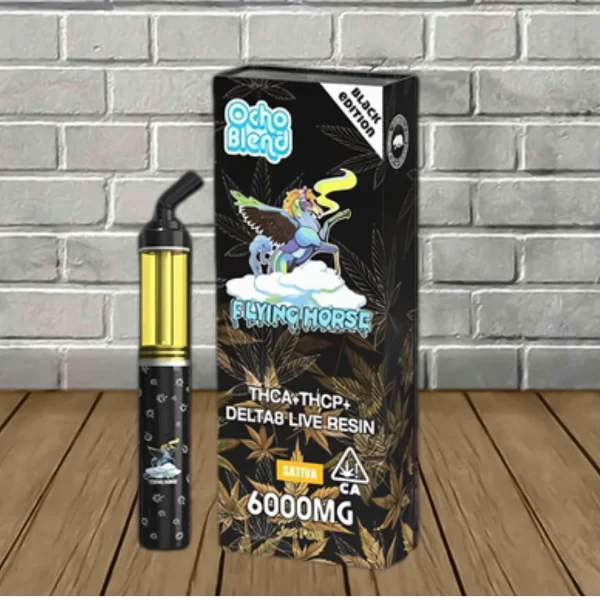 Flying Horse Ocho Blend Black Edition Disposables contain a powerful yet balanced 6g blend of THCa, Delta 9 THCP, Delta 8 THC, and live resin terpenes for enhanced flavor. As mentioned, they have blended a combination of fast-acting and slow-acting cannabinoids to cover all the bases.