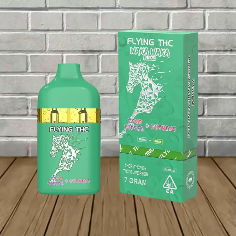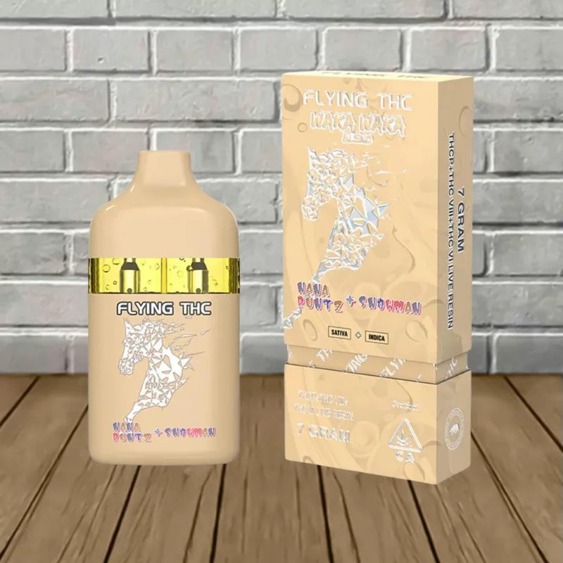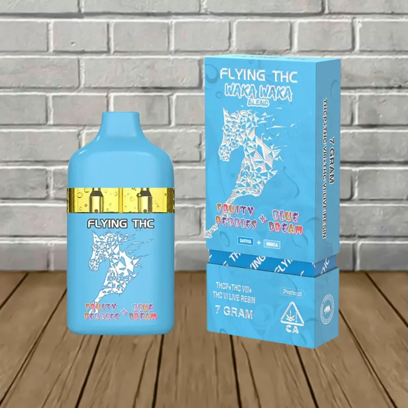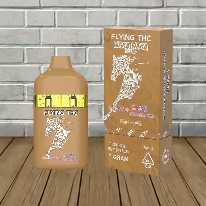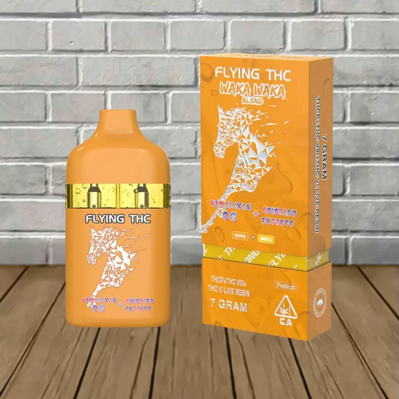 Flying THC Waka Waka Blend Disposables contain a powerful 7g blend of Delta 9 THCP, Delta 8 THC, Delta 6 THC, and hemp-derived live resin terpenes for enhanced flavor.