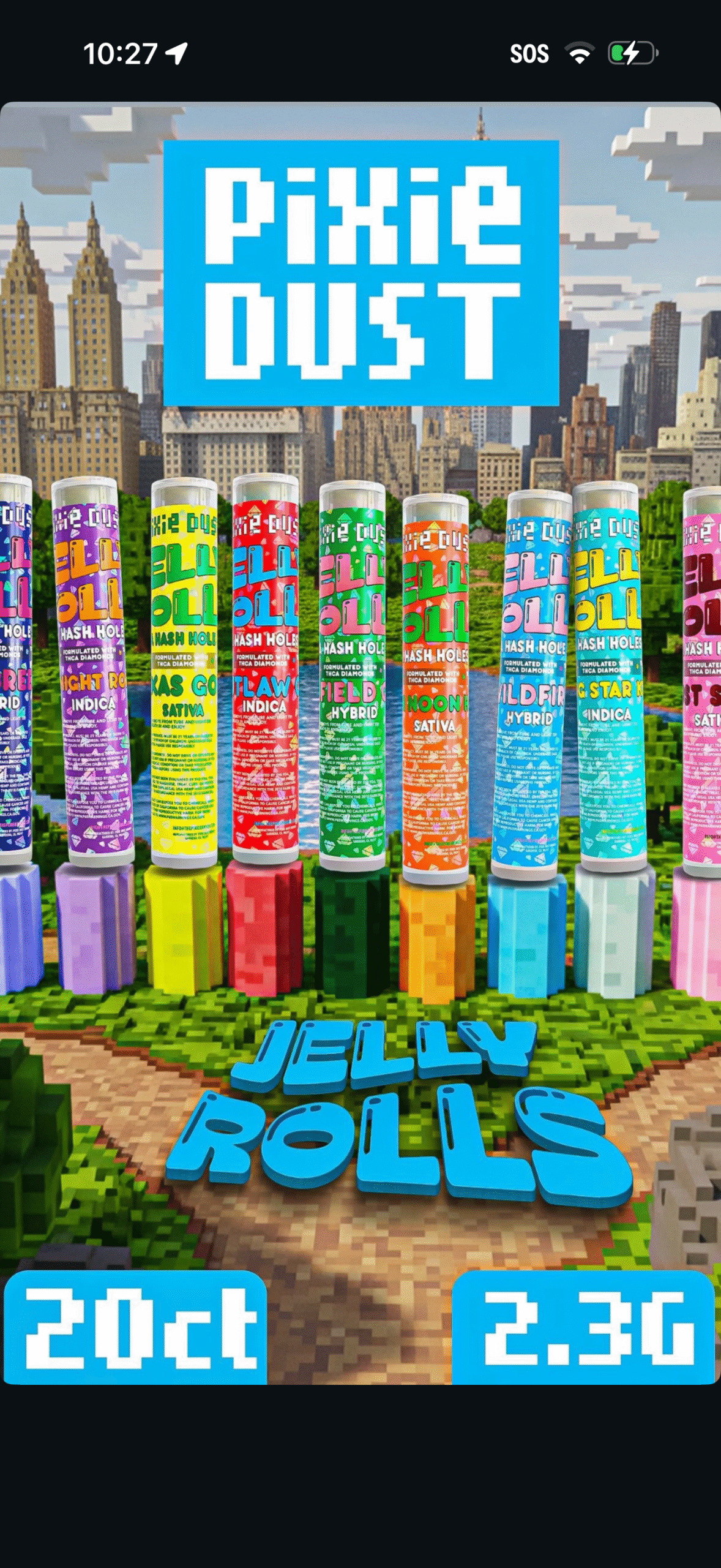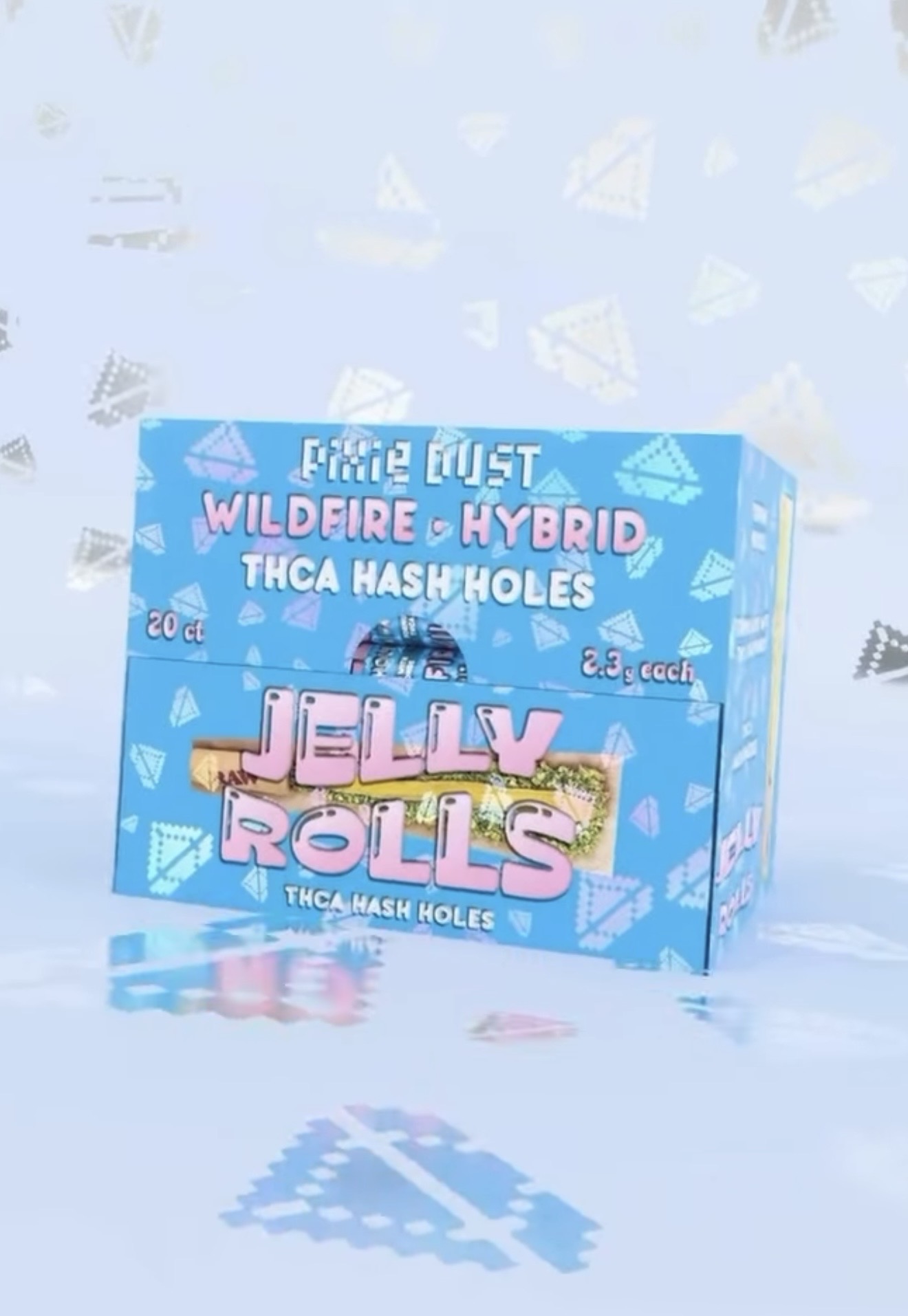 Introducing the Pixie Dust Jelly Rolls 2.3G Hash Hole, the next evolution in high-end hemp craftsmanship. Each Jelly Roll is a meticulously hand-rolled pre-roll infused with THCA diamonds, terpene-rich hash badder, and premium indoor-grown hemp flower — creating a slow-burning, flavorful, and ultra-potent experience like no other.