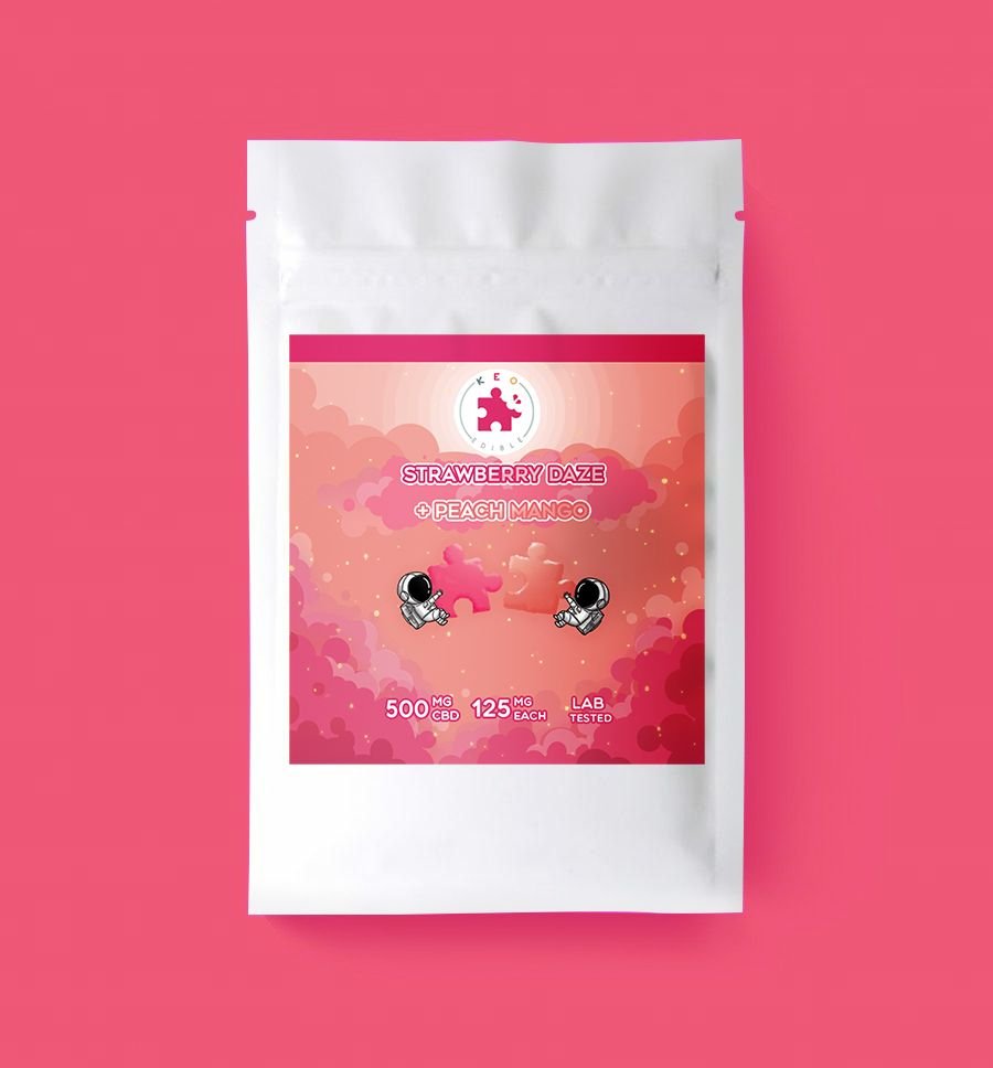 Strawberry Daze & Peach Mango Puzzle CBD Gummies | 500mg | Keo Edibles